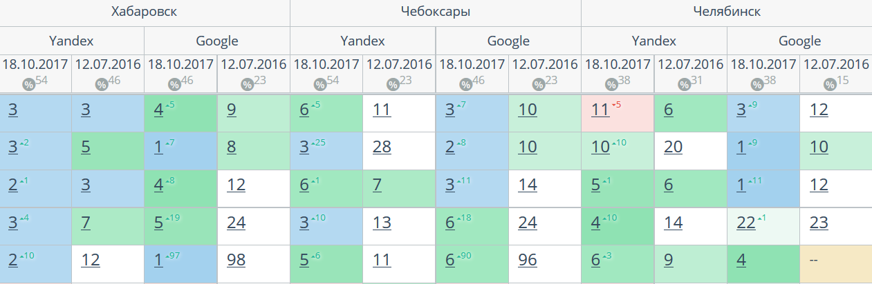 Комплексный интернет-маркетинг: SEO, SERM, SMM и т.д. Время продвижения более 15 месяцев. Продвижение в Яндекс и Гугл: МСК + РФ дало и продолжает давать непрерывный рост позиций по Москве и РФ. Трафик 2500 человек/день. Отчетность и контроль позиций по 54-м самым крупным городам. Ниже позиции 5-ти самых важных запросов интернет-магазина через несколько месяцев после начала работ и сейчас.